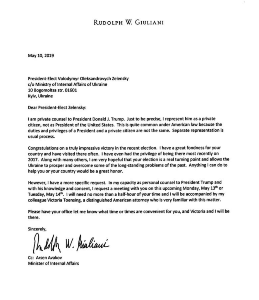Yeah, about that. Parnas turned over this letter from Rudy Giuliani to the newly-elected president of Ukraine.