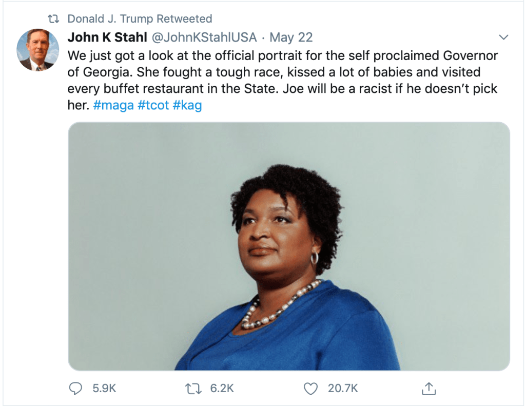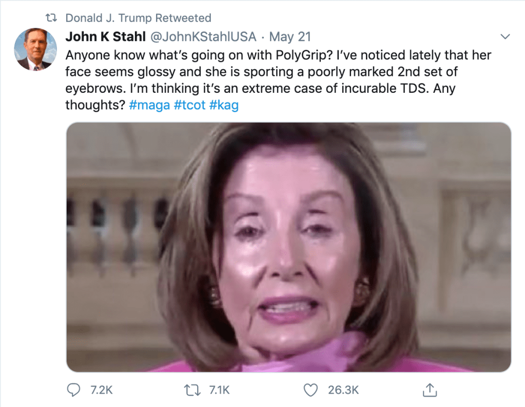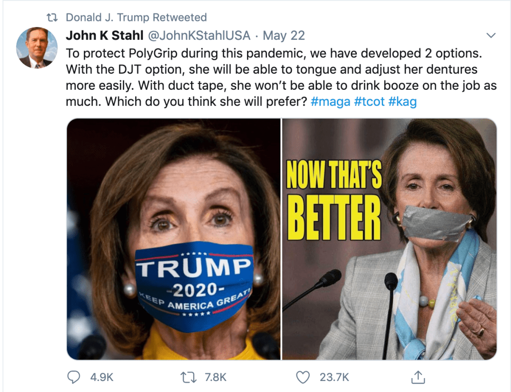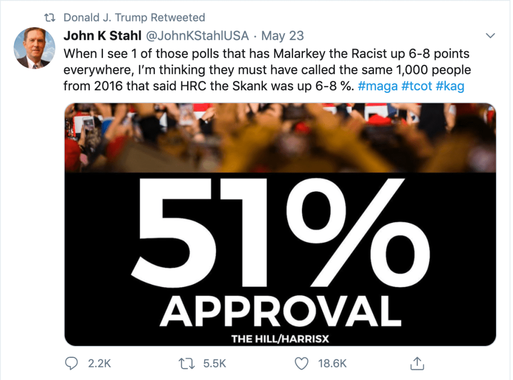 Here, the President of the United States retweets Matt Couch, who is currently facing a lawsuit for defamation from the family of Seth Rich, a DNC staffer whose tragic murder was twisted into a conspiracy theory. This theory was relentlessly pushed by Couch as well as Sean Hannity of FOX, and the Washington Times, both of which were eventually forced to issue embarrassing retractions—but not before they had made the lives of Rich’s grieving family hell.