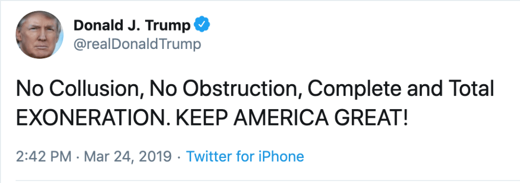 > jaclyncreiswig posted: ” Remember the few years our country spent hearing > about the Trump campaign’s ties to, and possible collusion with, Russia? > Remember how President Trump insisted the entire time that the whole thing > was a hoax? A witch hunt? Remember when the Mueller Repor” >