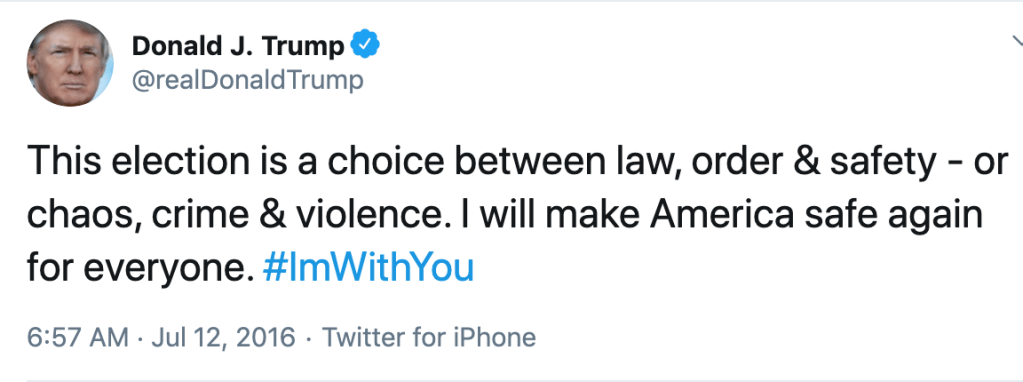Even back in 2016, he didn’t want to scare me, but did want to let me know that if I didn’t vote for him, I would get chaos, crime, and violence.