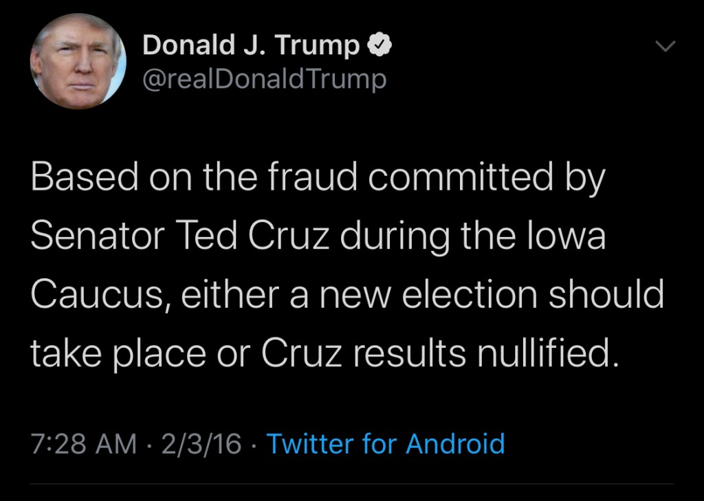 He did it when Ted Cruz beat him in the Iowa primary in 2016.