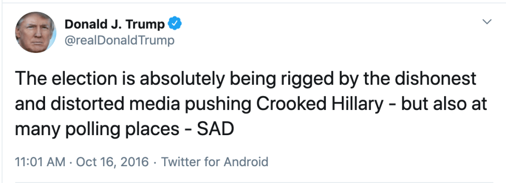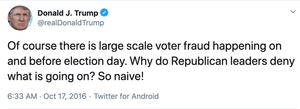 Of course, the GOP is simply following the example of its leader. And claiming fraud is what he always does when he’s losing.