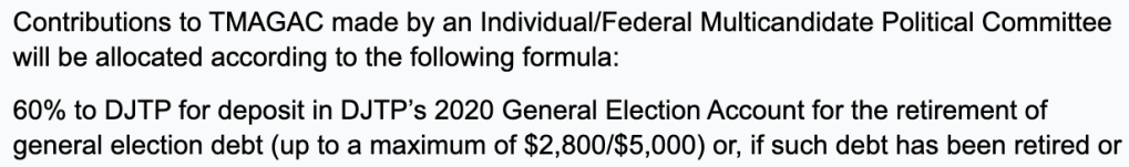 But in the fine print, you can see that 60% of donations will go toward paying off the campaign’s debts.