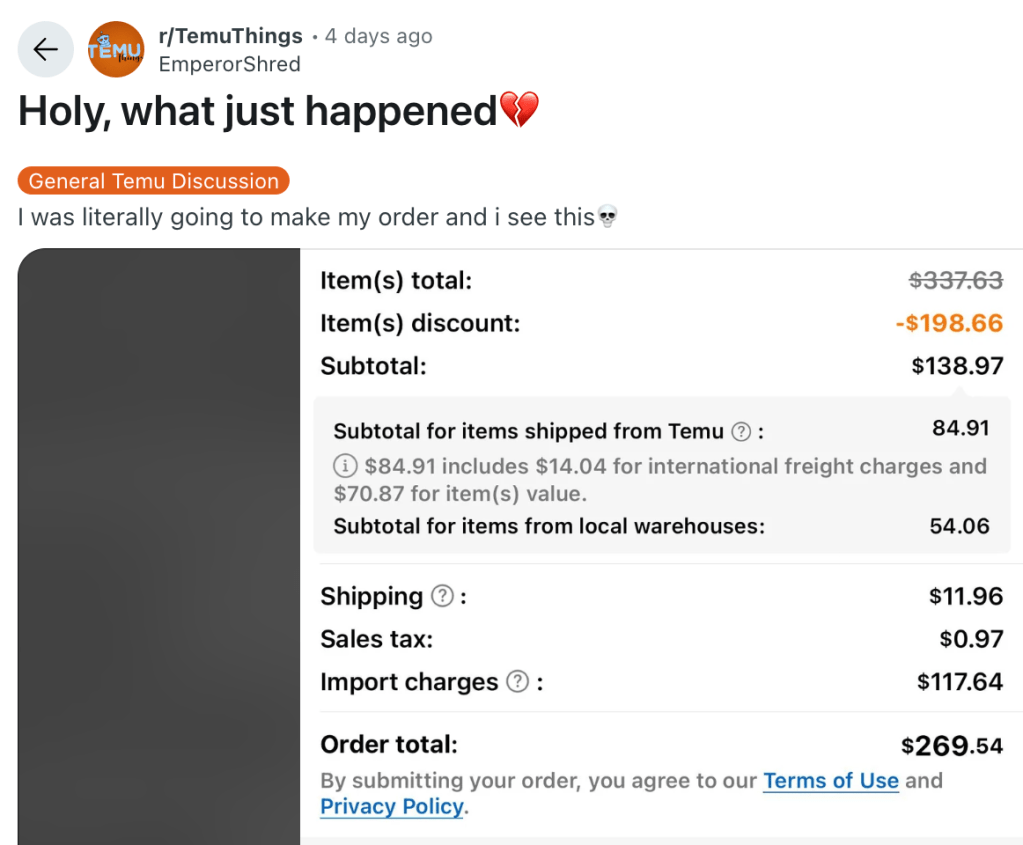 We can also be certain that he will do anything in his power to keep us from seeing his tariffs’ direct consequences to us. After reports surfaced that Amazon was planning to list the cost of tariffs right alongside the prices of products affected by tariffs, Trump placed an angry call to Jeff Bezos, who apparently assured the President that Amazon will not implement that plan. White House Press Secretary Karoline Leavitt said the plan was a “hostile and political act” by Amazon. (The President cannot stop Chinese retailer Temu from doing the same, however, which Temu shoppers are now learning.)